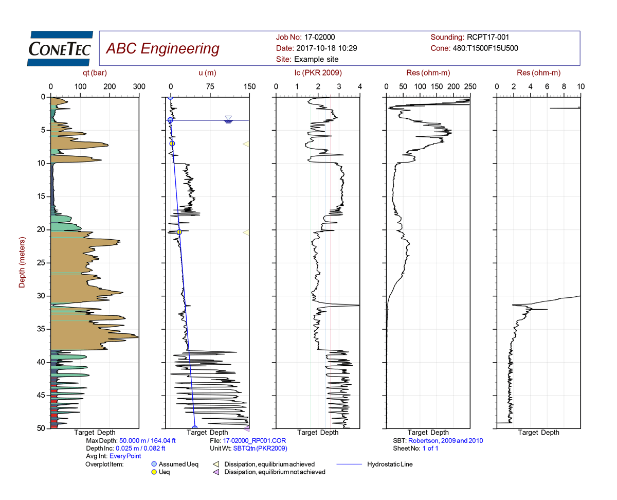 Determinación de la resistividad/conductividad del suelo / agua mientras recolectando todos los otros parámetros CPTu / SCPTu