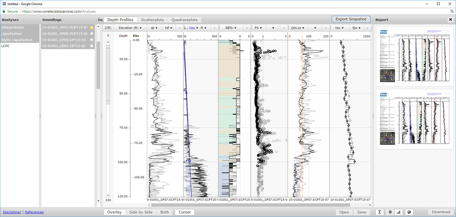 - Cyclic and static liquefaction analysis and a wide range of calculated CPT parameters